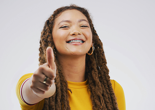 Water not only hydrates, it encourages saliva production. And, if you can’t brush right away, rinsing with water helps remove food particles from your teeth and braces.